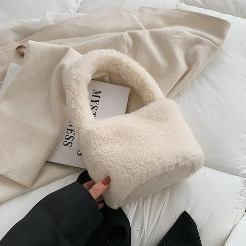 Winter Furry Soft Plush Handbags for Women Solid Shoulder Bag