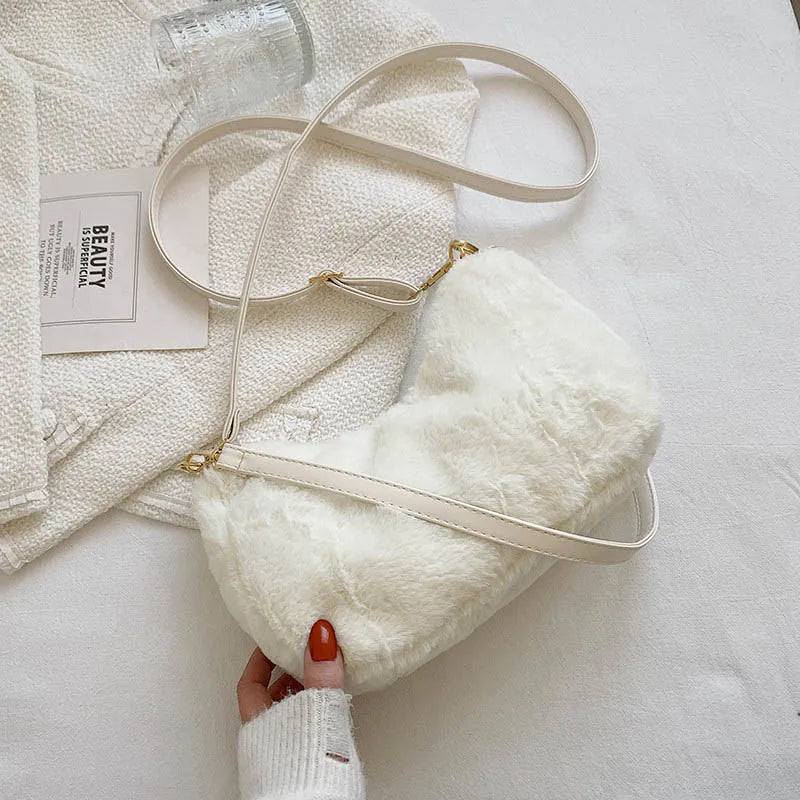 Stay stylish and cozy with this plush handbag perfect for casual outings and travel. Features a large capacity and armpit dumpling design.