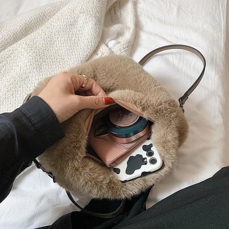 Winter Women Faux Fur Cross body Bag Lady's Handbag Shoulder Tote Bags