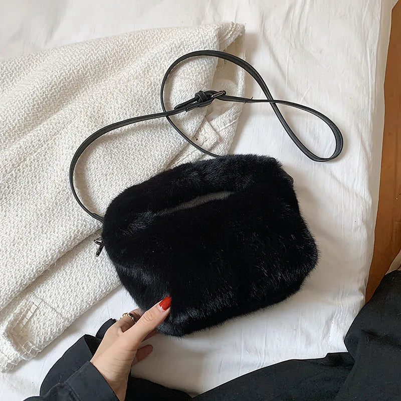 Stay stylish and cozy with this winter faux fur cross body bag. Perfect for any lady looking to step up their fashion game this season.