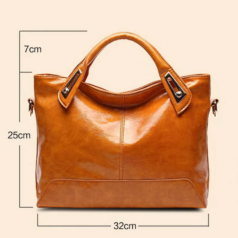 Women Bag Oil Wax Leather Handbags High Shoulder Bags Retro Ladies Handbags