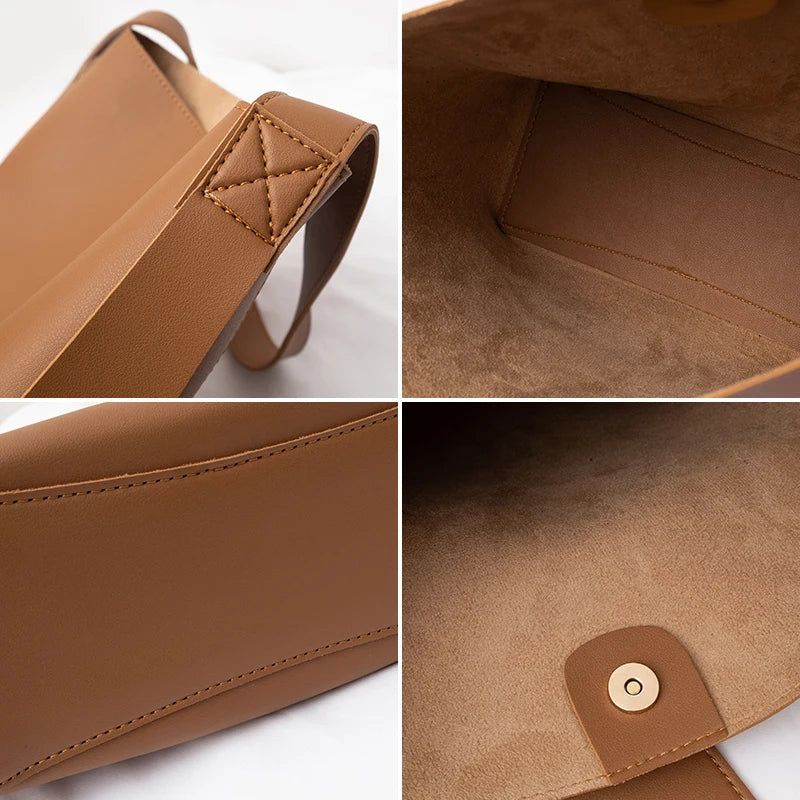 This women's bucket bag is made of high-quality PU leather, perfect for everyday use. It features a spacious interior and a stylish design.