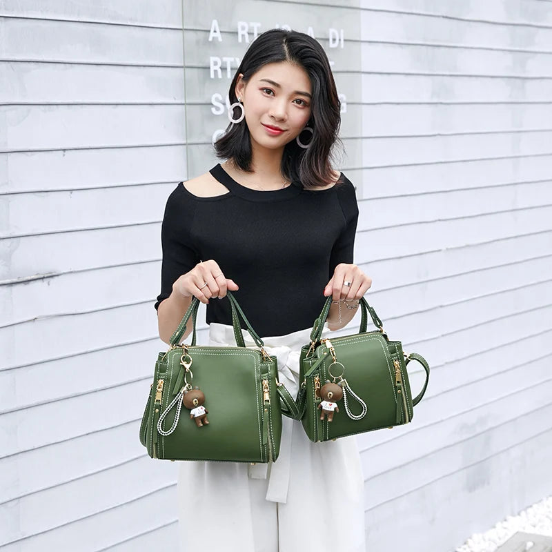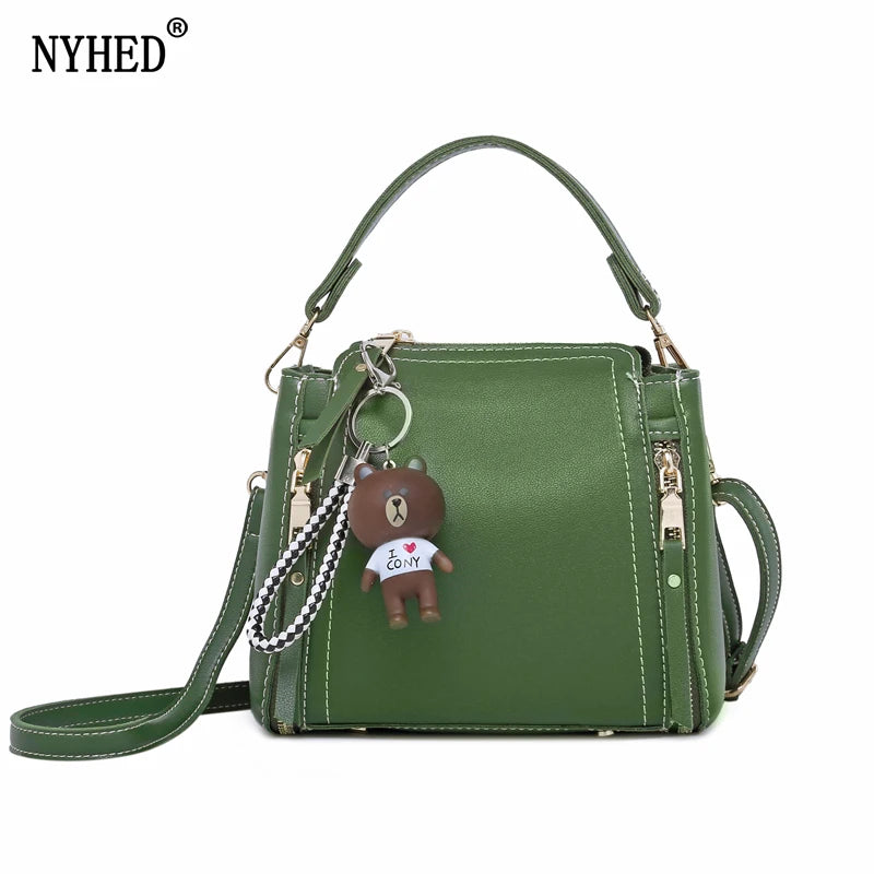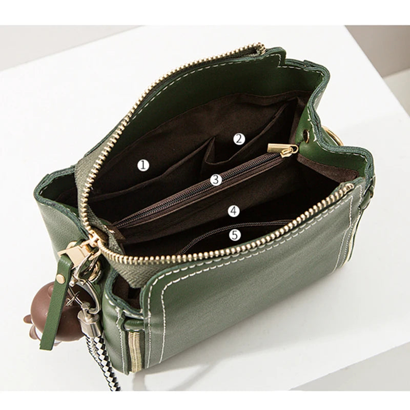 Women Bucket Handbags Pu Zipper Shoulder Bags Bear Patent