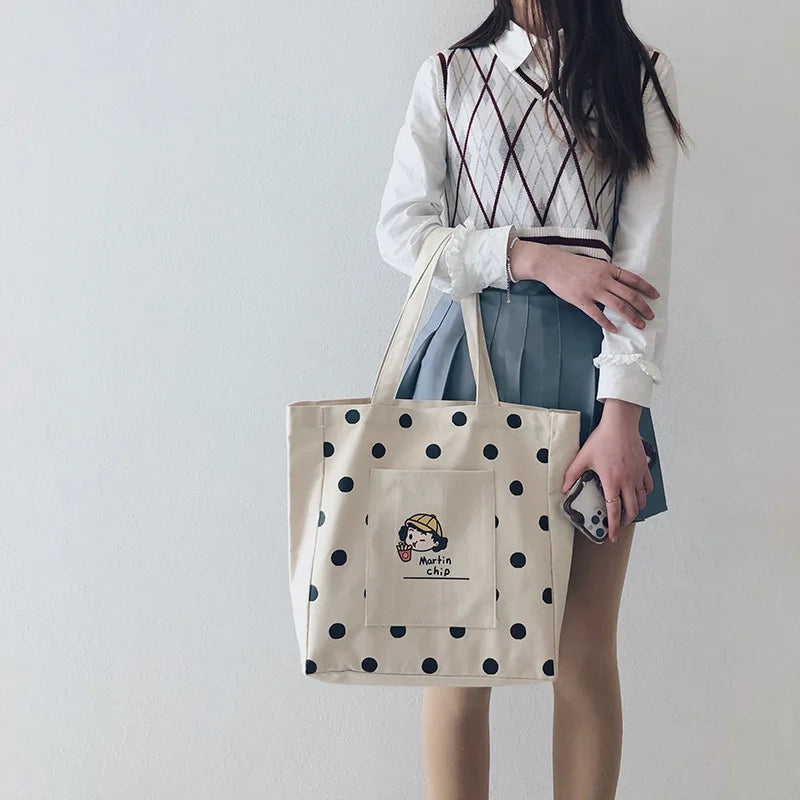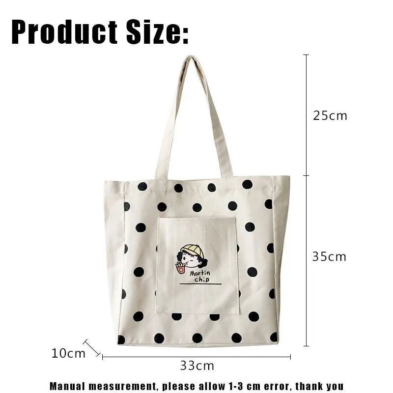 Women Canvas Shopping Bag Dots Bookbags Female Cotton Cloth Shoulder Bags