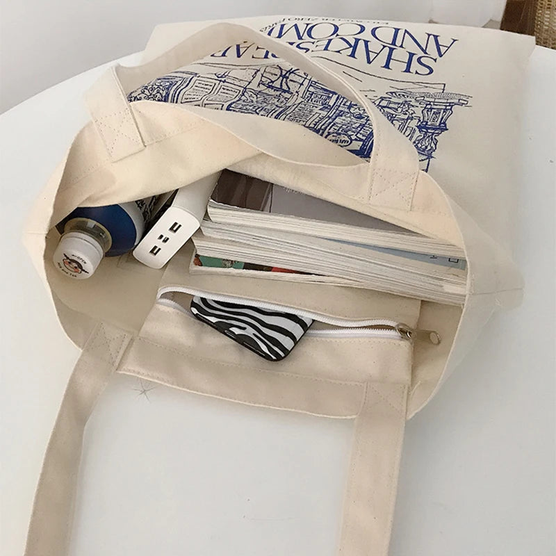 Women Canvas Shoulder Bag Print Ladies Shopping Cotton Cloth