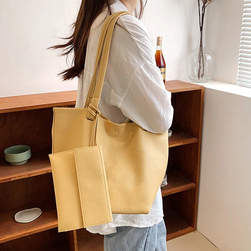 Women Casual Tote Bags PU Leather Shoulder Large Capacity Crossbody Soft Handbag