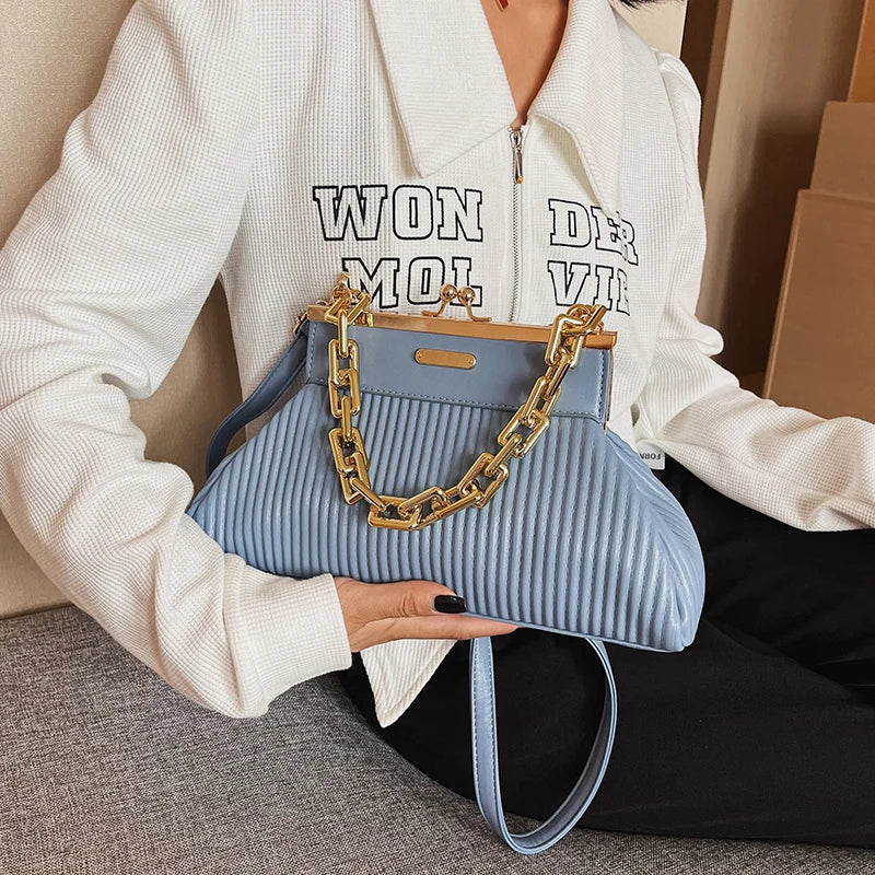 Women Chain Clutch Shoulder Bag Handbag Pleated Crossbody Bag