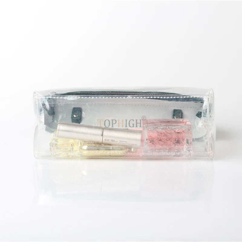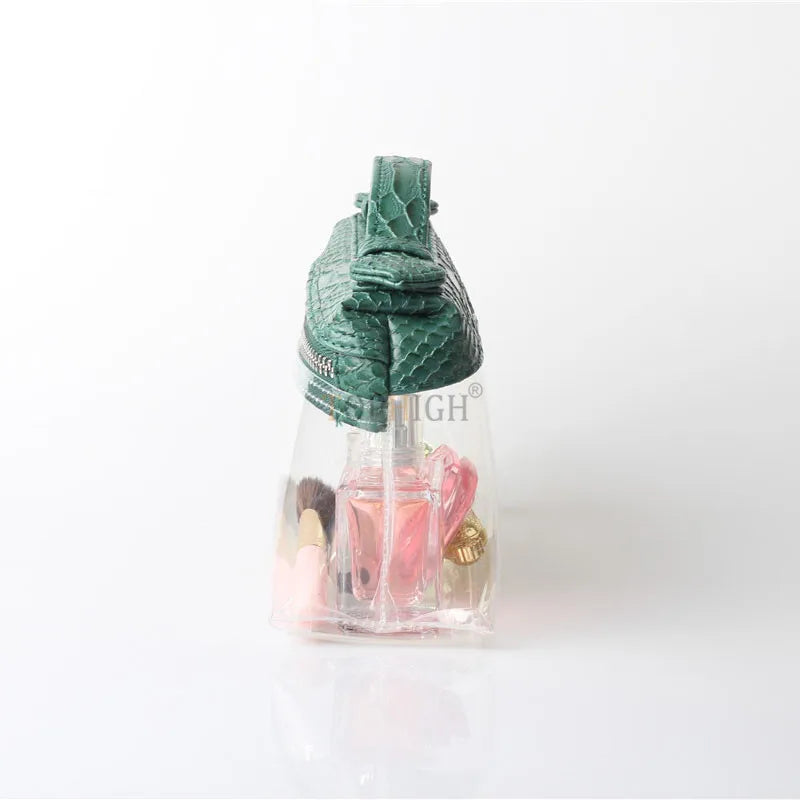 - Clear PVC tote handbag with Ostrich or Snake pattern accents