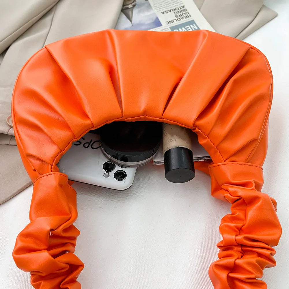 Women Cloud Handbag Soft Leather Pleated Underarm Travel Bag Dumpling Tote Bags