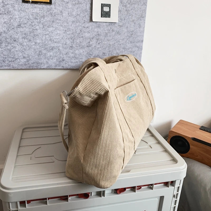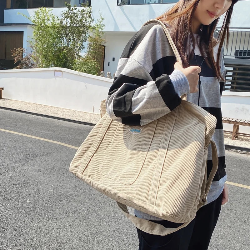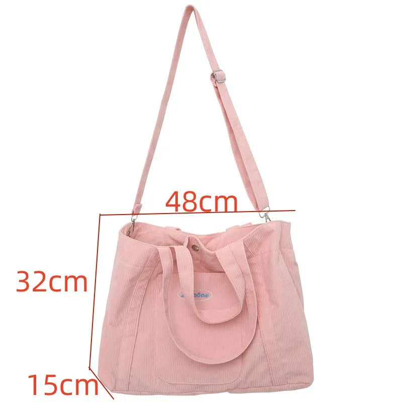 Women Corduroy Shoulder Bags Striped Fabric Handbags Zip Tote Canvas Crossbody B