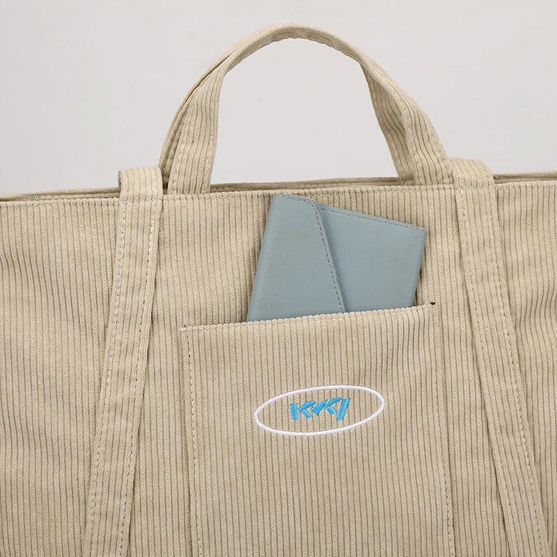 Women Corduroy Tote Bag Large Capacity Shoulder Handbag