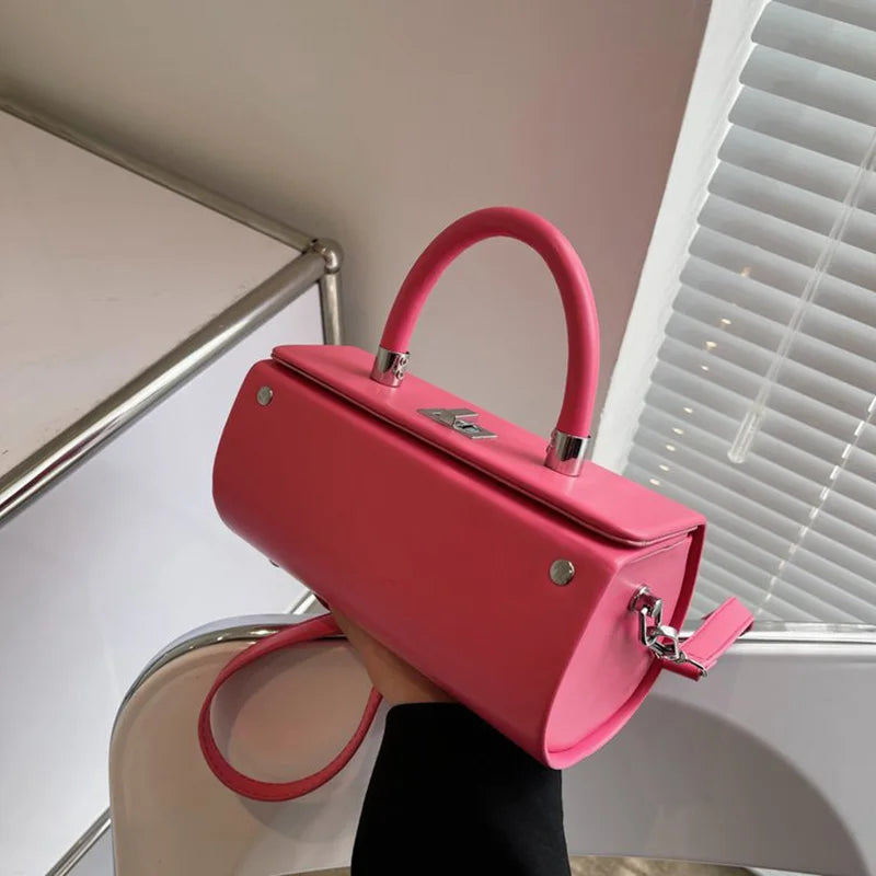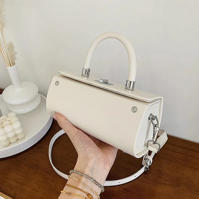 Women Drum Shaped Shoulder Tote Bag Lady PU Leather Handbag