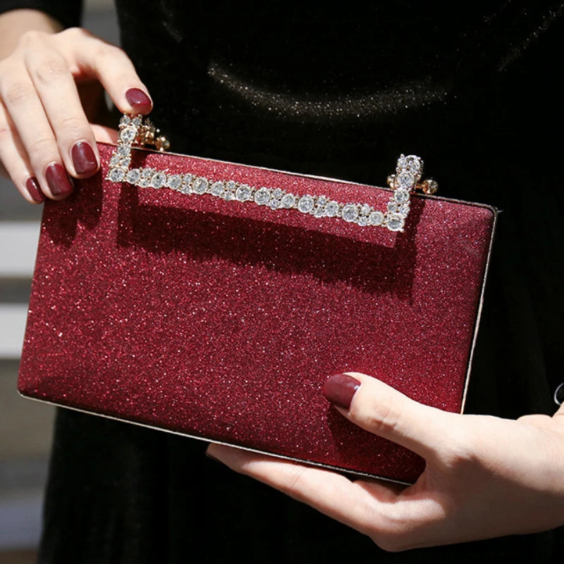 This elegant evening bag is perfect for parties, banquets, and special occasions. It features a diamond design and can be carried as a clutch or a shoulder bag.