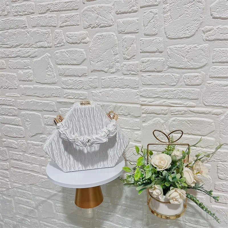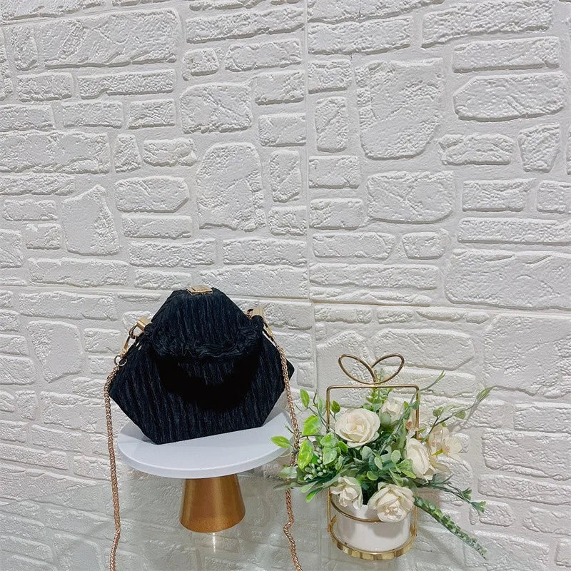 Add a touch of elegance to your evening ensemble with this stylish shell fold crossbody bag. Perfect for parties and special occasions, this bag features a detachable chain shoulder strap for versatile carrying options.