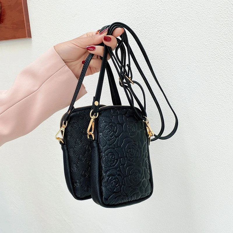 This stylish soft leather shoulder bag is perfect for carrying your cell phone, purse, and other essentials. Featuring a beautiful flowers design, it adds a touch of elegance to your outfit.