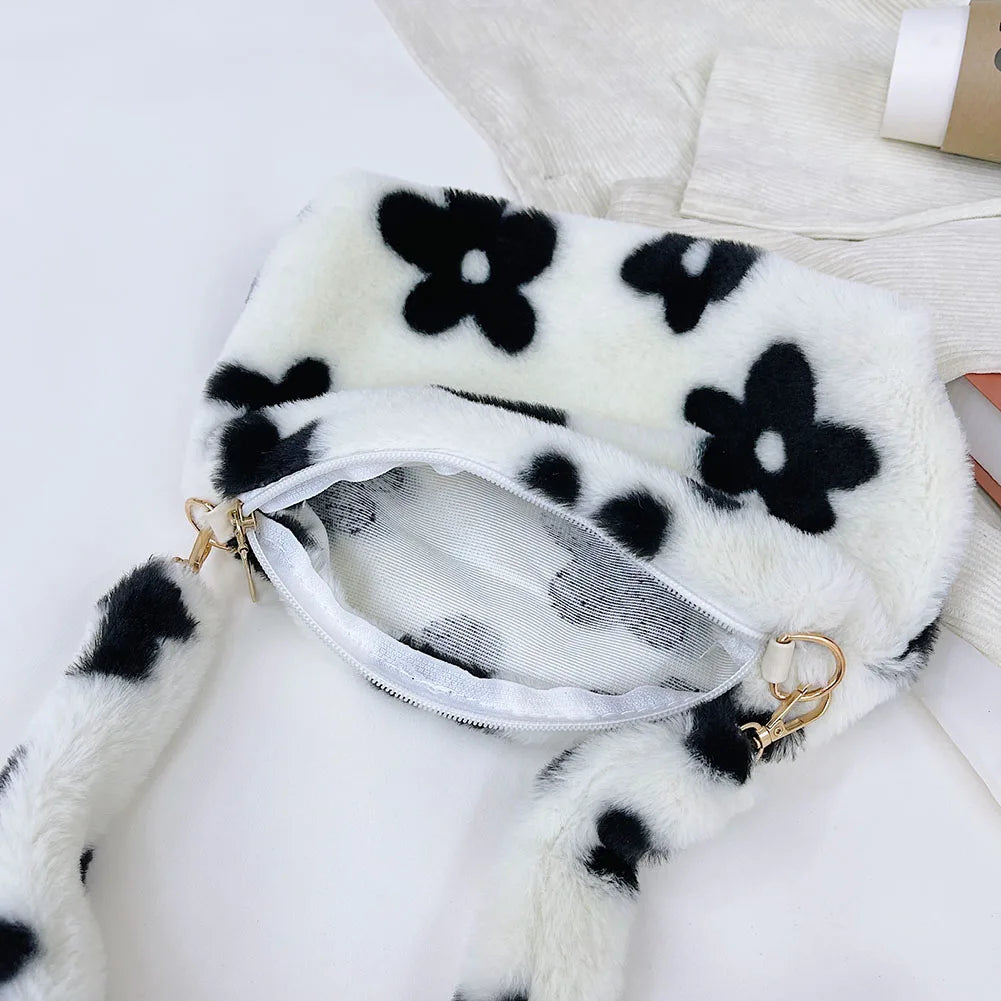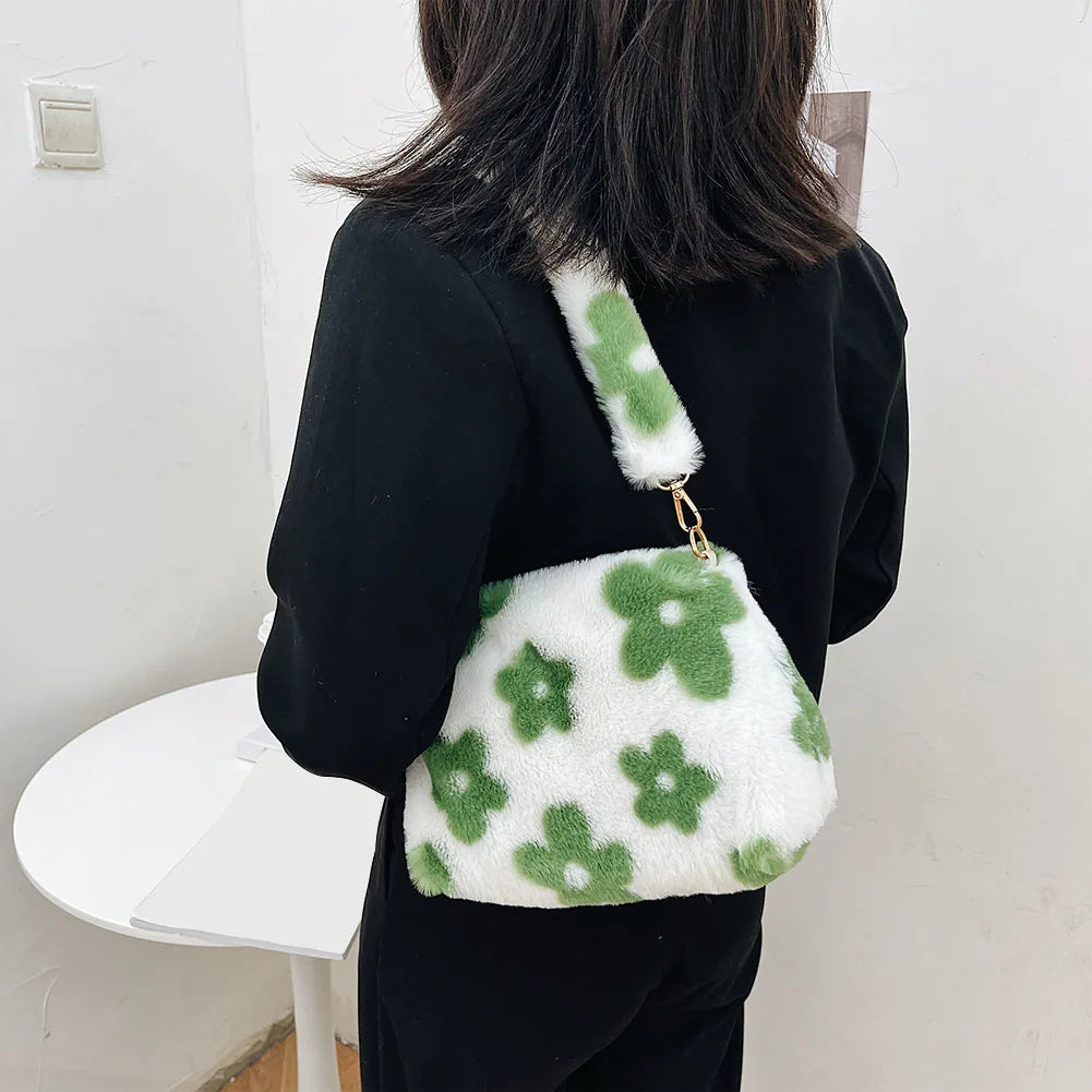 Stay stylish and cozy with this winter shoulder bag featuring a cute flowers print design. Made of soft plush material, it's perfect for everyday use or travel.
