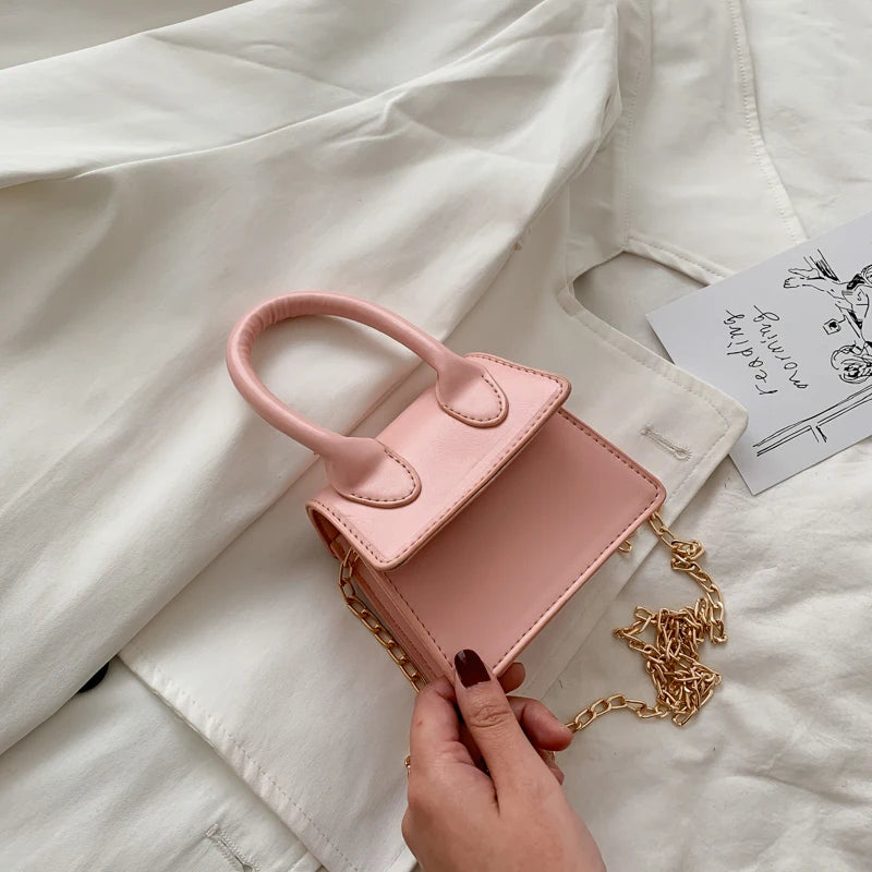 Stay stylish with this famous women handbag that features a chain design. It's perfect for carrying essentials and adds a touch of elegance to your outfit.