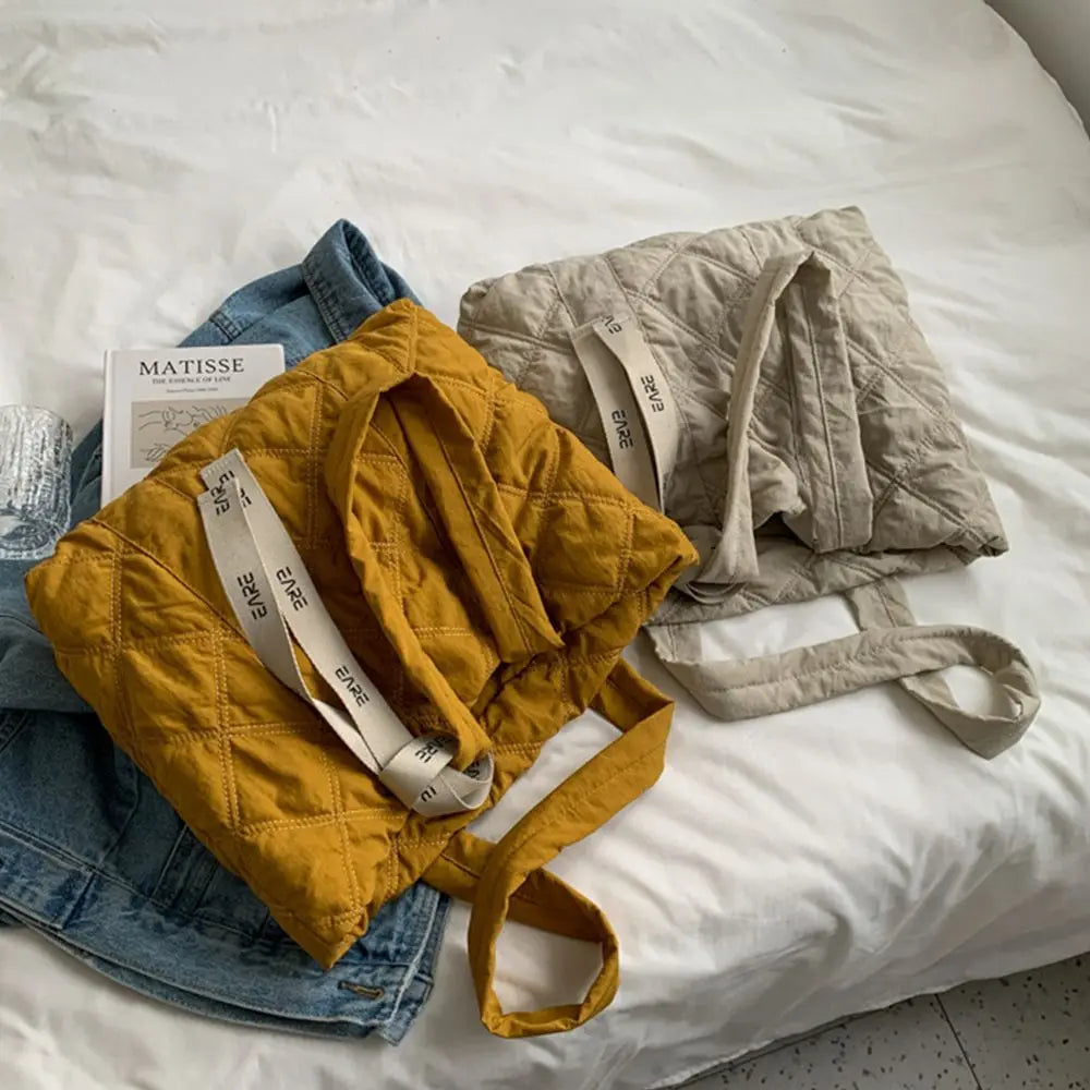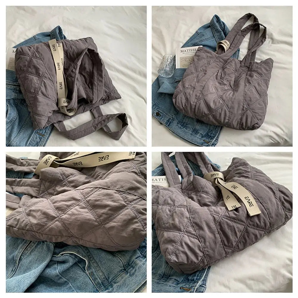 Women Large Capacity Down Cotton Padded Plaid Shoulder Bag