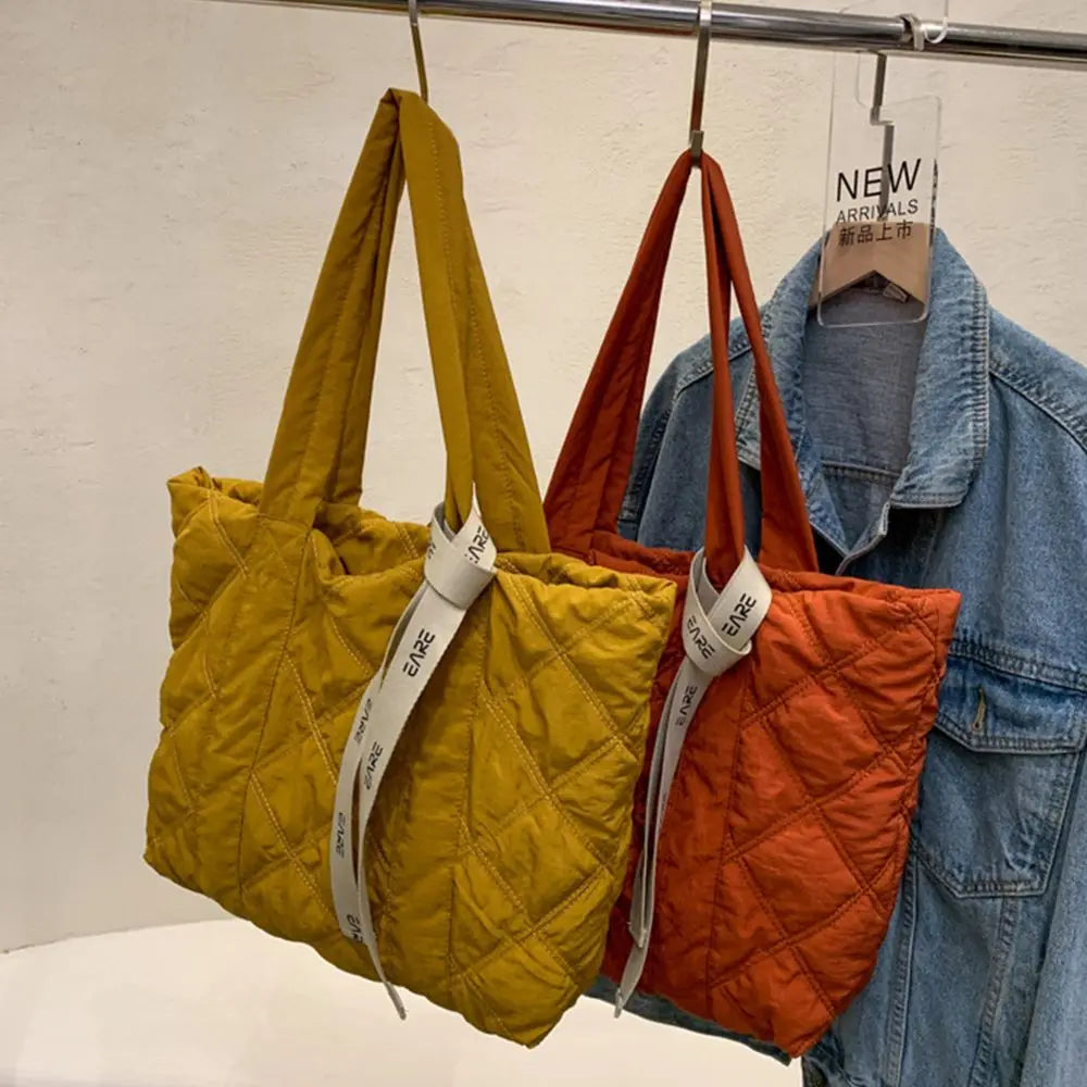 Stay warm and stylish with this winter tote bag, featuring a padded design and plaid pattern. Perfect for carrying all your essentials in cold weather.