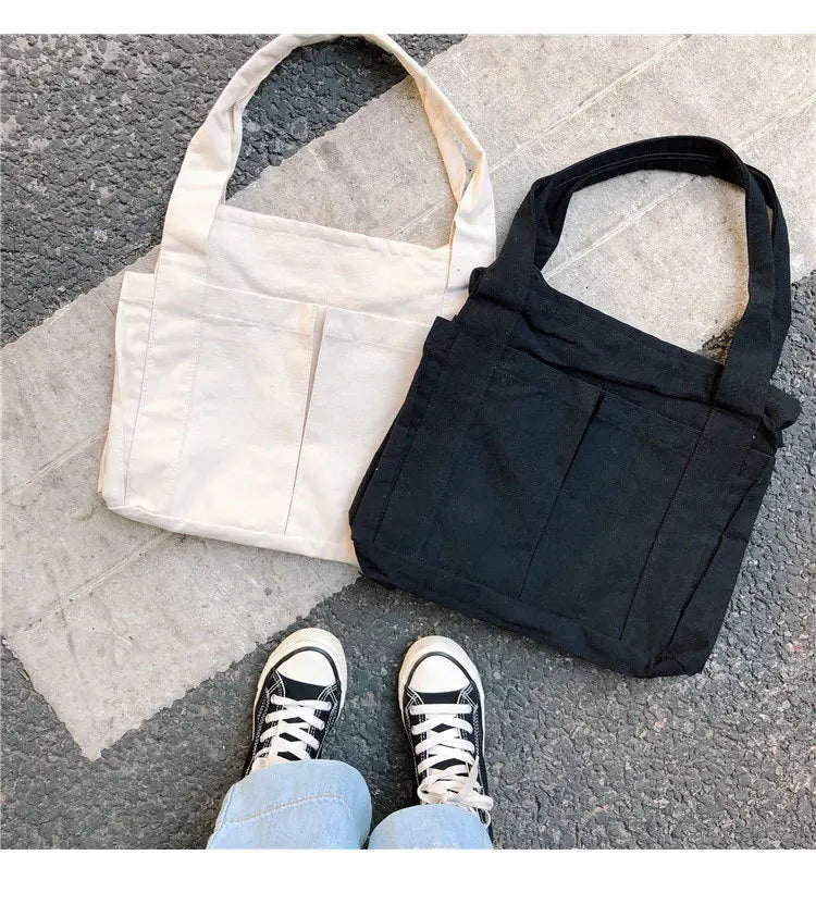 Elevate your style with this chic and practical canvas shoulder bag featuring a retro design inspired by literature and art. Perfect for carrying books or everyday essentials.