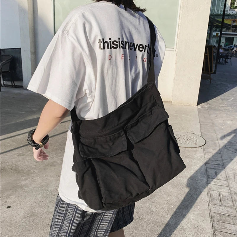 This women's school messenger bag is designed for casual everyday use. Made of durable canvas, it features a large capacity for carrying all your essentials.