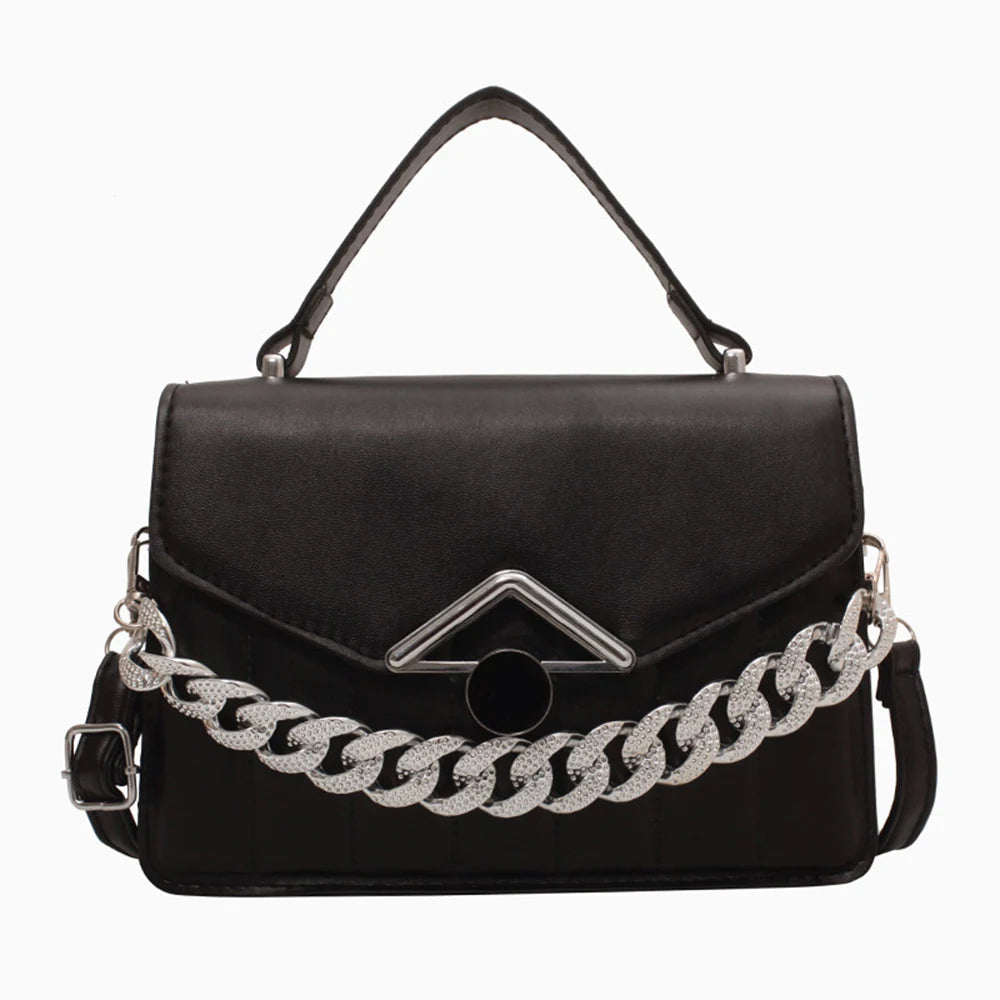 This stylish messenger bag features a solid chain design with stripes. It is a perfect accessory for everyday use or special occasions.
