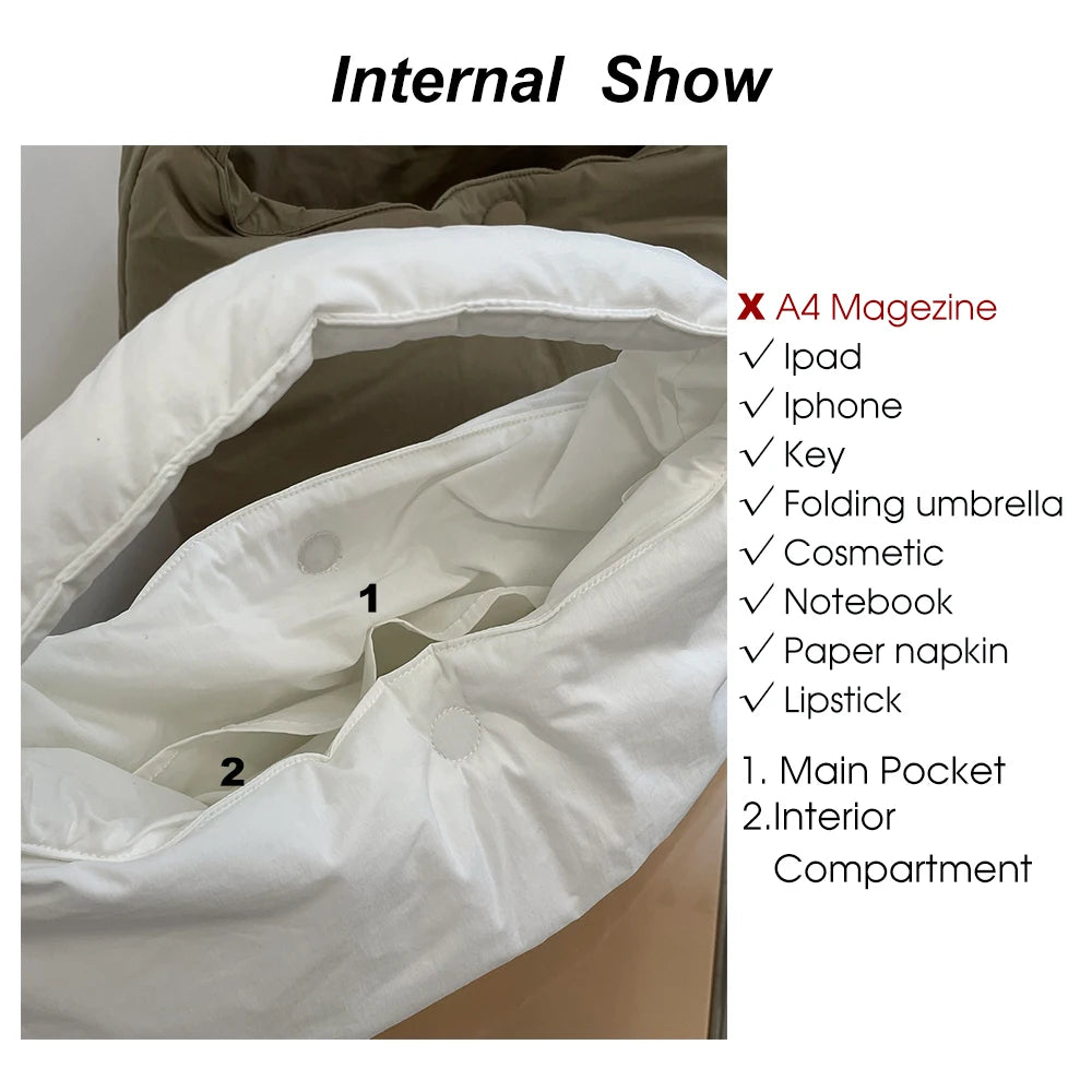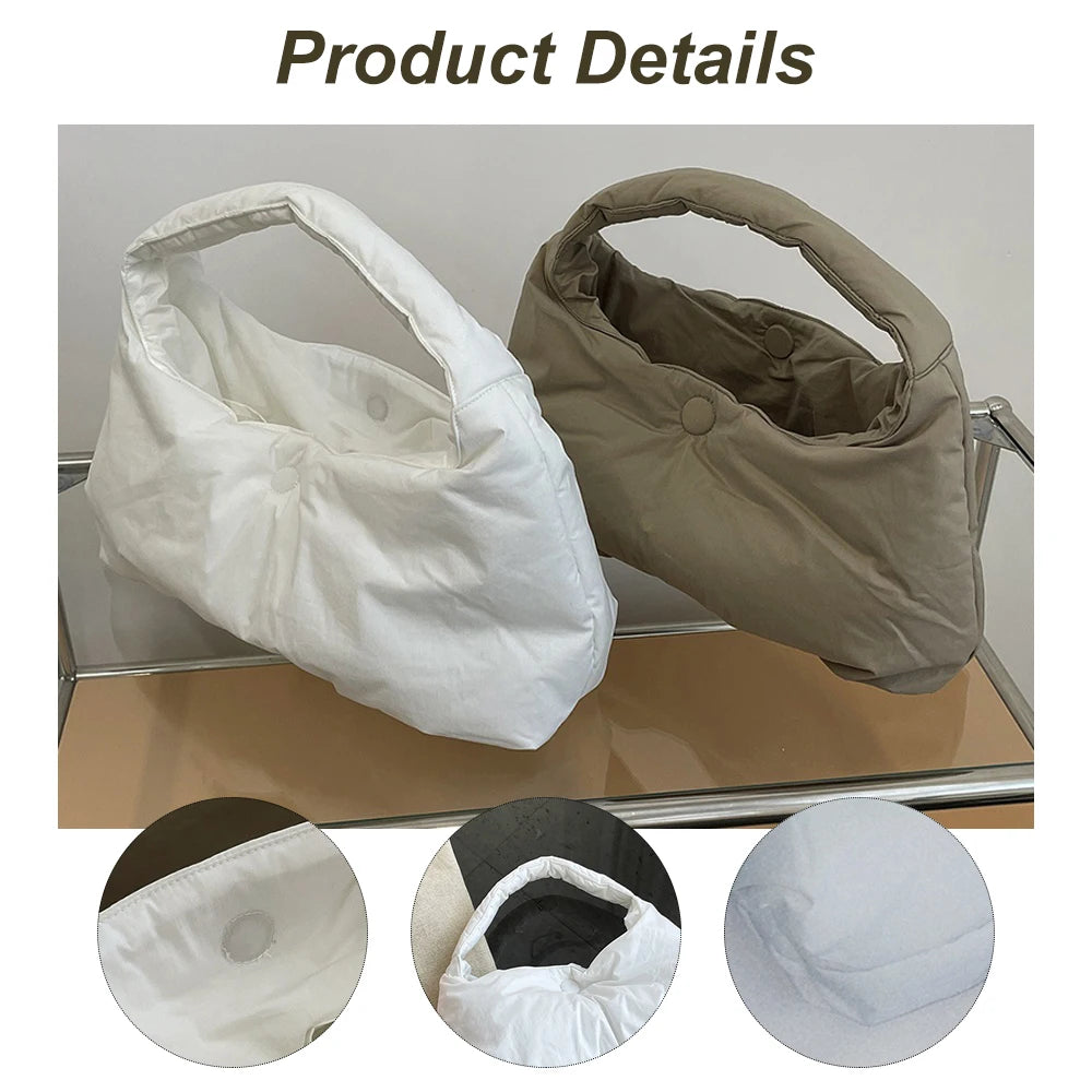 Description:Stay cozy and stylish with this soft and fluffy quilted shoulder bag. Made of cotton duvet and nylon, this winter shopper tote is perfect for the lady on the go.Features: Soft and fluffy padded shoulder bag Quilted design for a winter chic look Made of cotton duvet and nylon material...