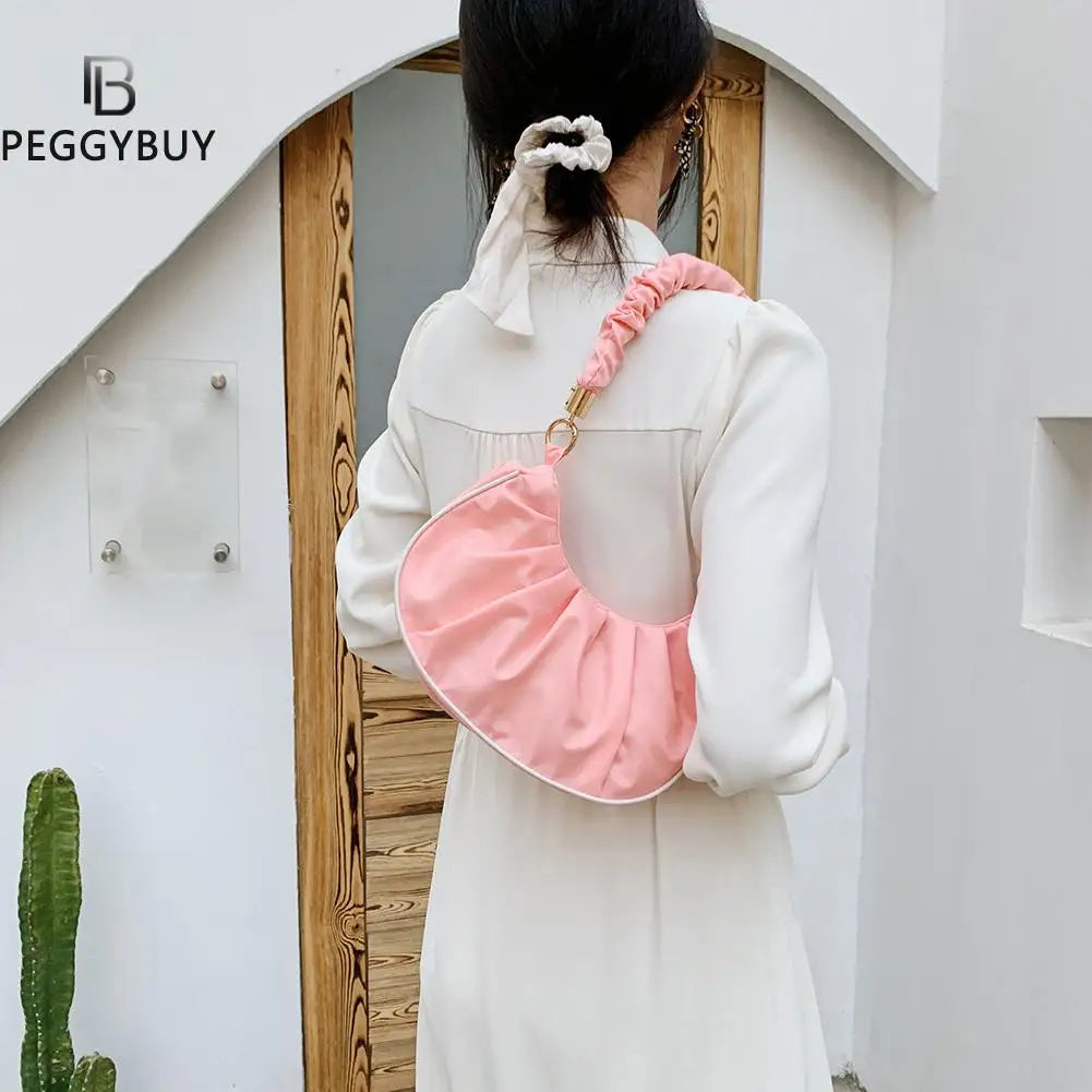 Women Pleated Shoulder Bag Casual Small Handbag Purse