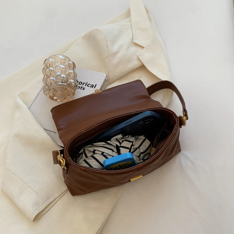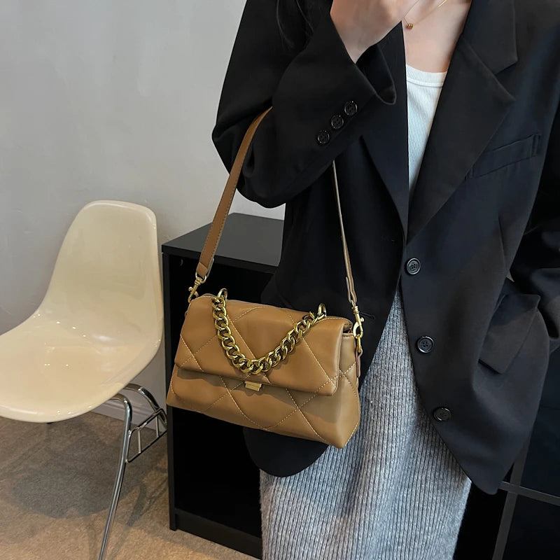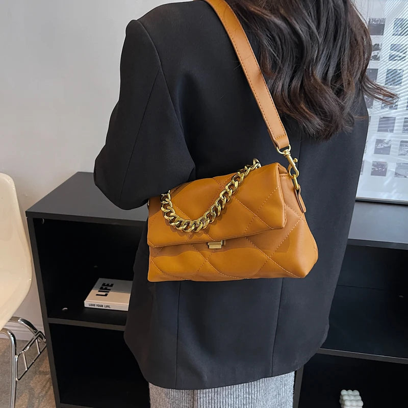 This stylish women's shoulder bag is made of high-quality PU leather with a chain strap. It is perfect for casual outings and everyday use.