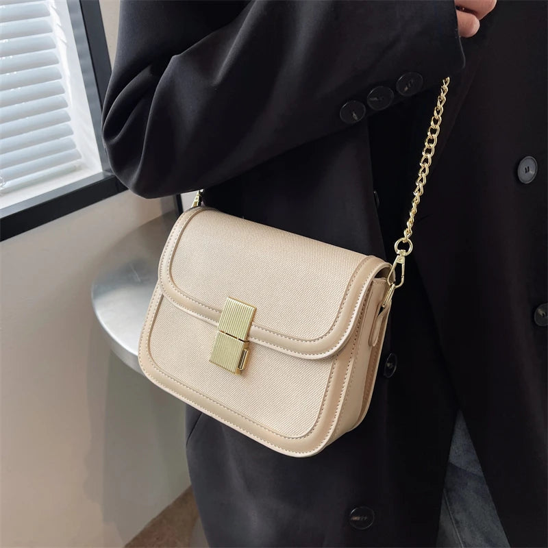 Stay trendy with this stylish PU leather crossbody bag featuring a chain strap and hasp closure. Perfect for daily use or special occasions.