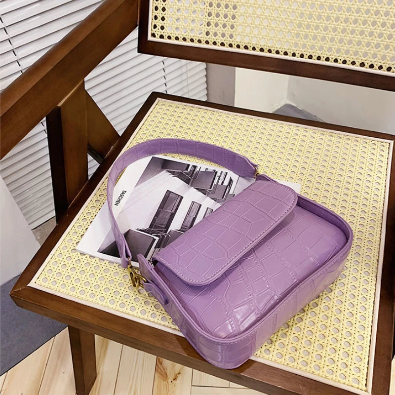 This stylish purple shoulder bag is perfect for fashion-forward women. Made of high-quality PU leather with a trendy crocodile pattern, this underarm handbag is ideal for adding a touch of sophistication to any streetwear look.