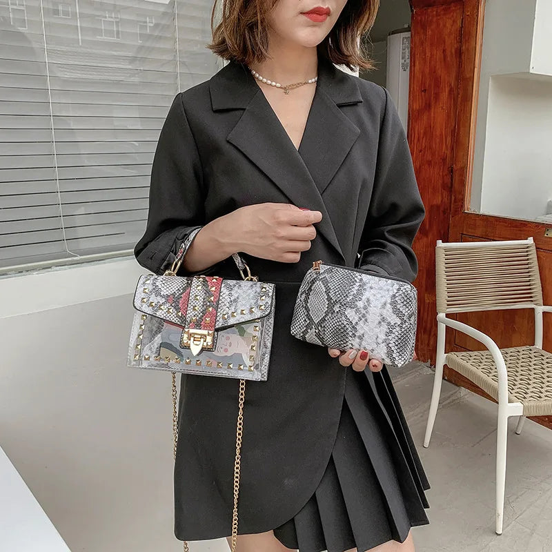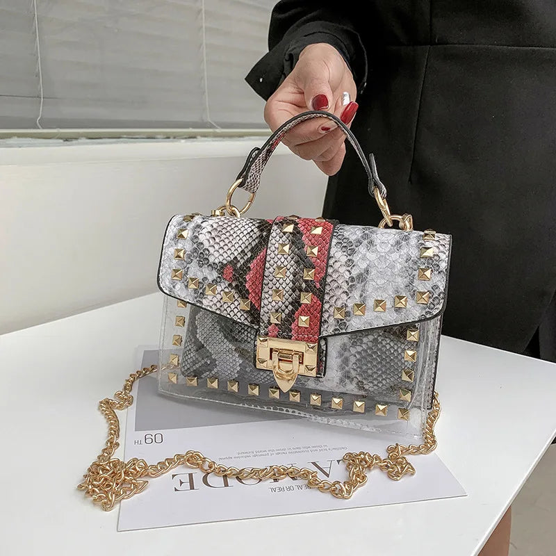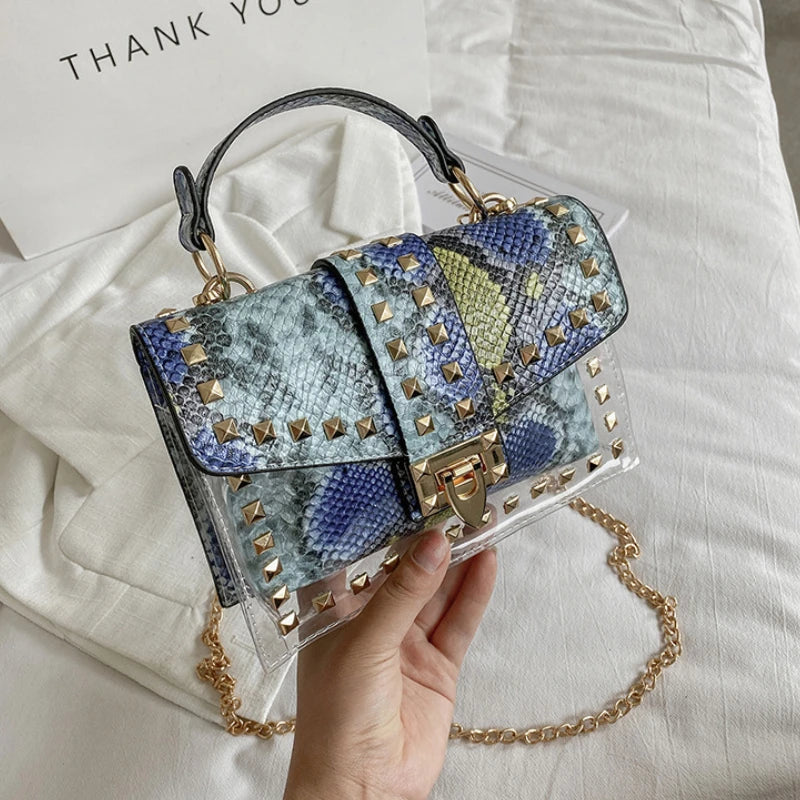 Women PVC Rivets Purses Clear Handbags Small Square Bags