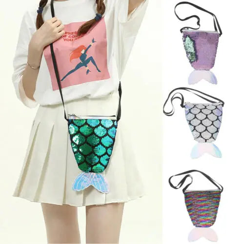 Women Sequins Small Shoulder Bag Crossbody Handbag Girl Cartoon Beach Bags