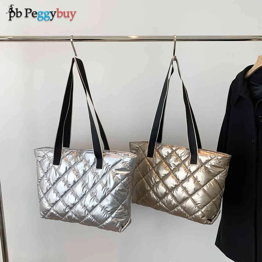 Women Shoulder Bag Winter Quilted Handbag Casual Large Capacity Shopping Tote