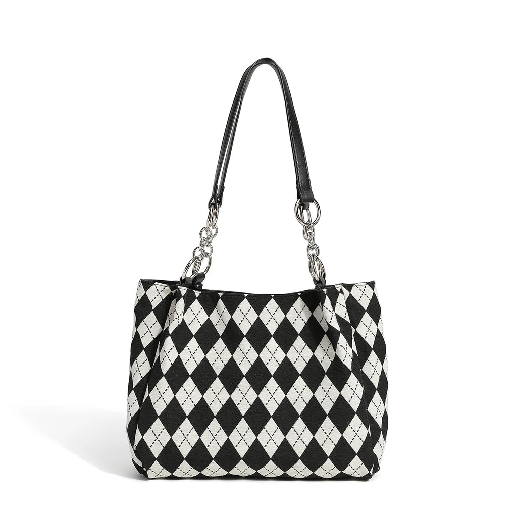 Elegant diamond checked shoulder bag made of high-quality PU leather.