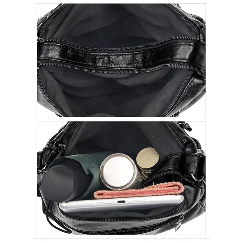 Women Soft Shoulder Bag PU Leather Purse Solid Messenger Crossbody Bag