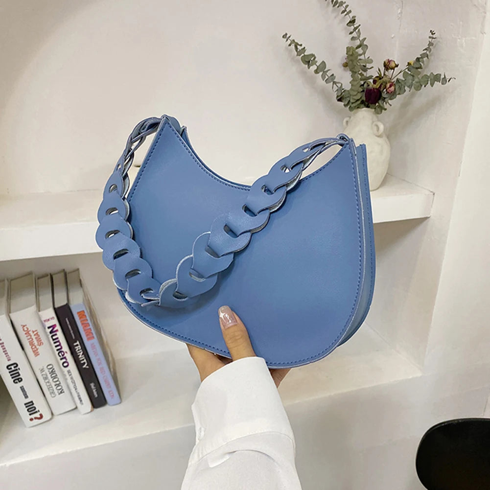 This women's underarm bag is perfect for daily use, featuring a weaving handle and a stylish design. Ideal as a commuter tote handbag.