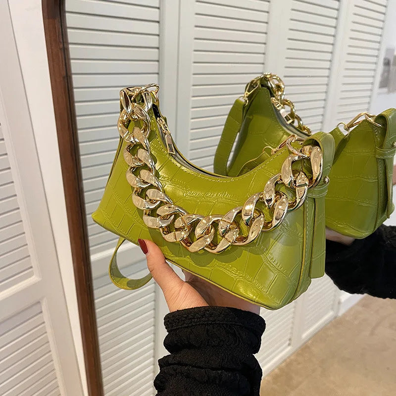 This women's shoulder bag is made of high-quality leather, featuring a retro design. It includes a solid chain strap and is the perfect accessory for casual outings.