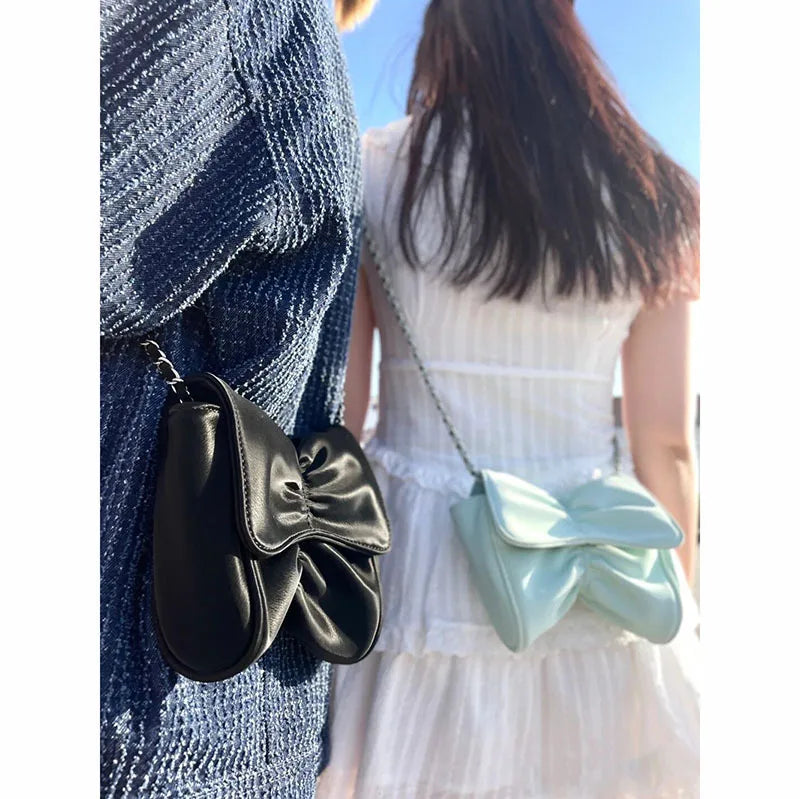 Women's Bow Leather Messenger Chain Bag Handbag Purse