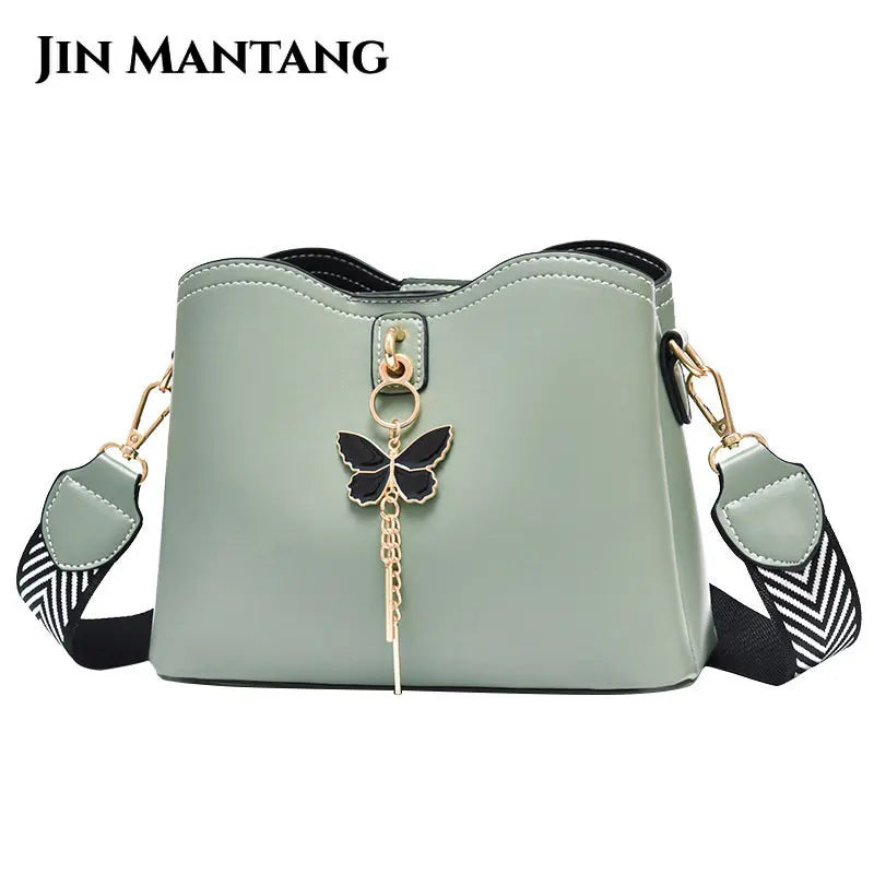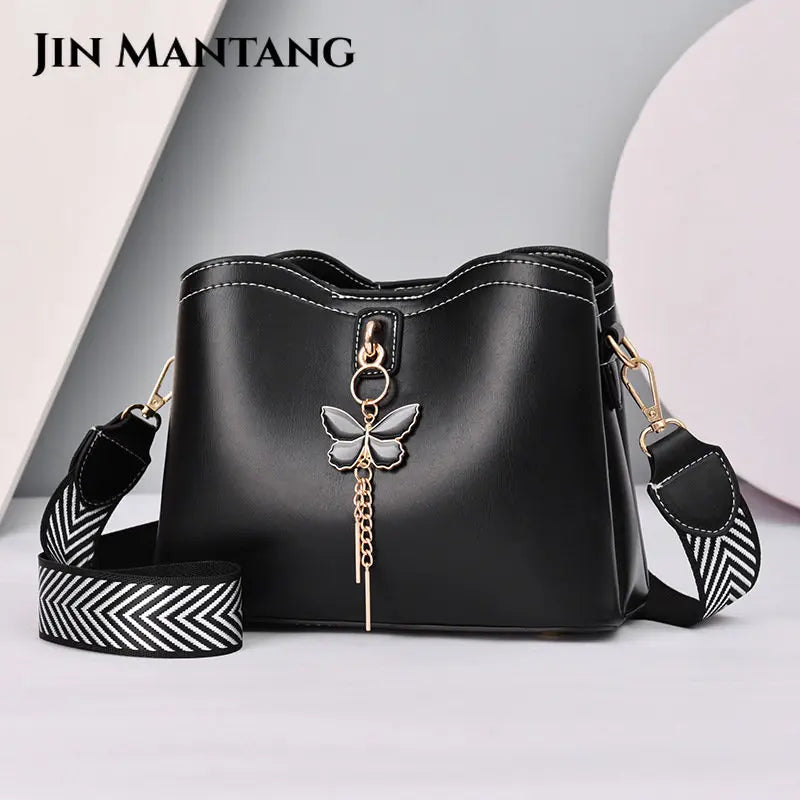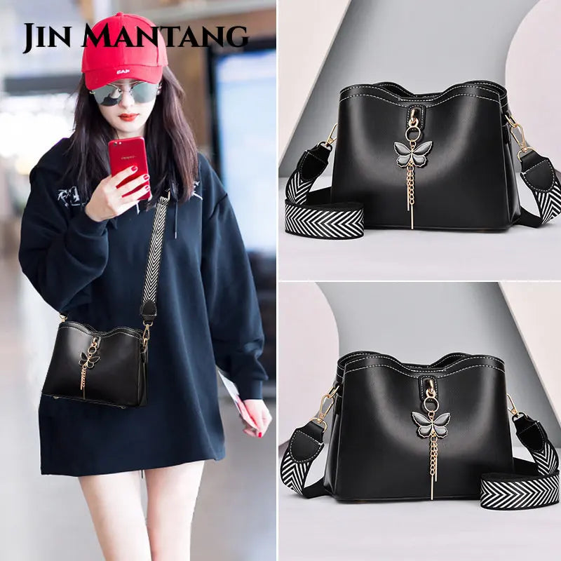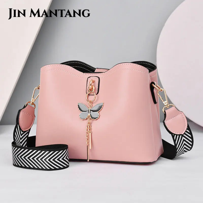 Women's Bucket Shoulder Bags PU Leather Weave Strap Messenger Bag