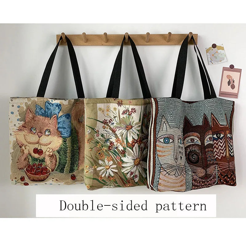 Women's Canvas Shoulder Bag Double-sided Printing Large Capacity Mother Bag