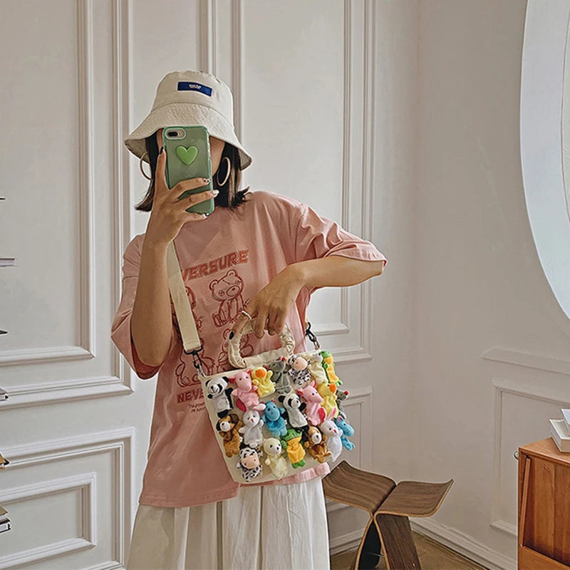 This shoulder bag has a large capacity and features a cute cartoon plush toys design. It is perfect for everyday use and can easily carry all your essentials.
