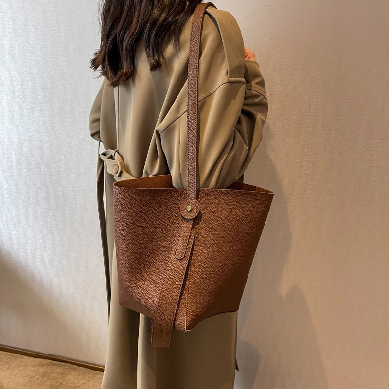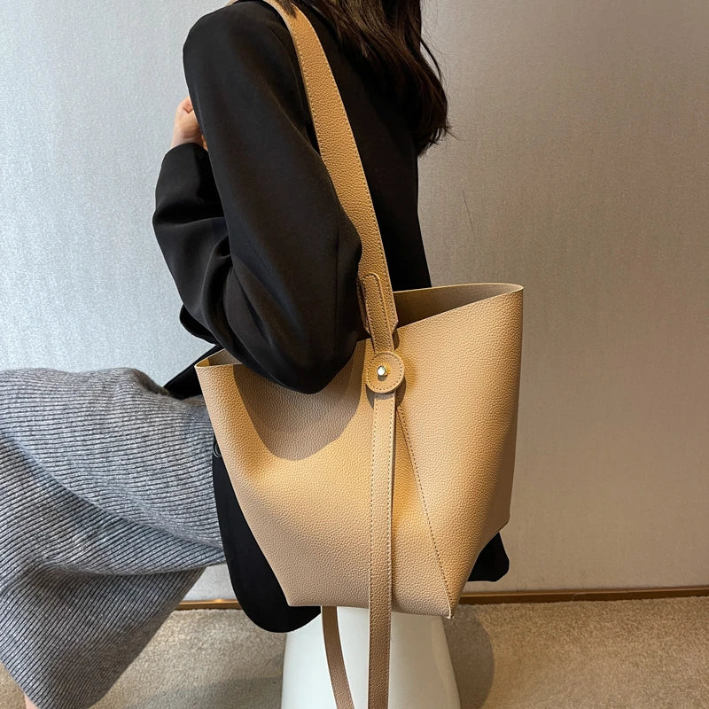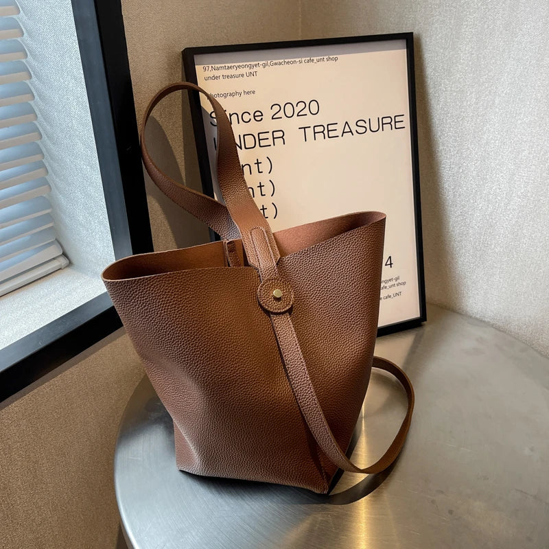 This stylish tote bag is made of PU leather and features a soft, comfortable design. Perfect for shopping, this bag has a large capacity to hold all your essentials.