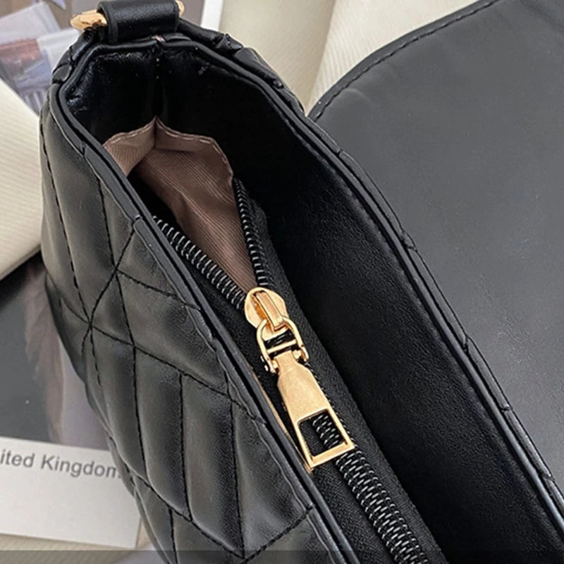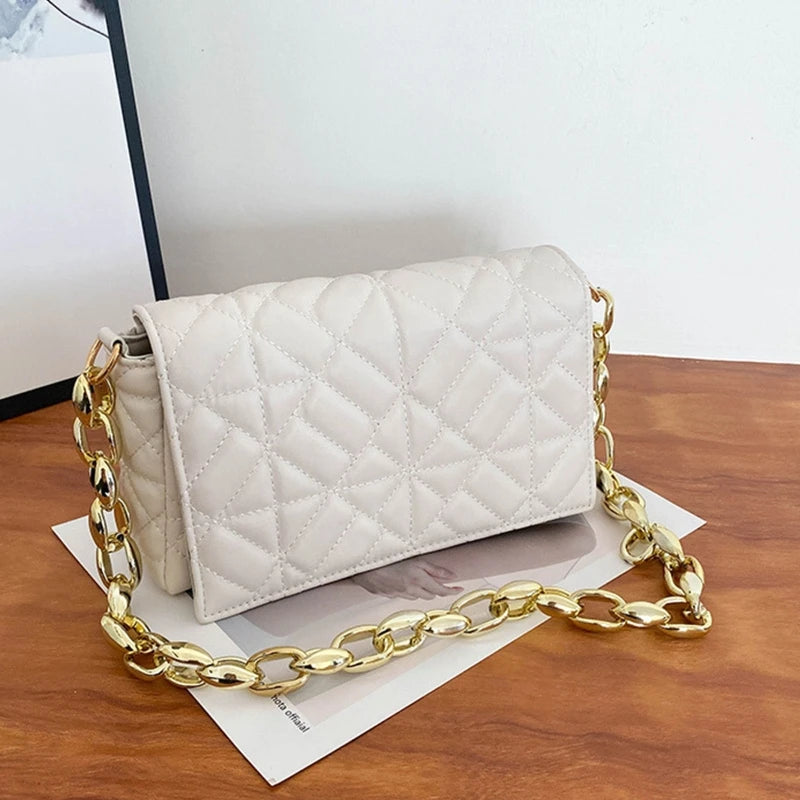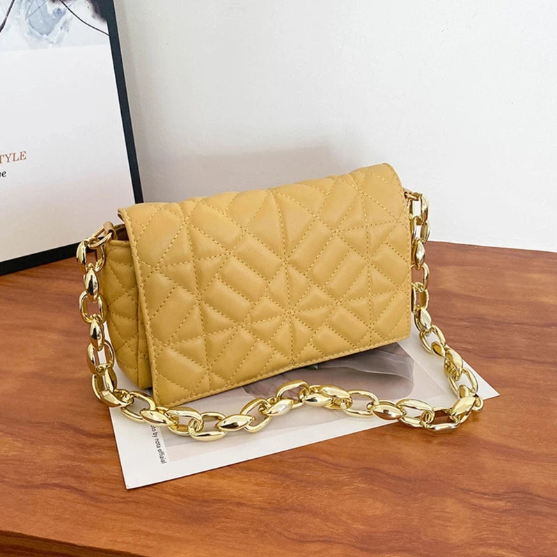 Stay stylish with this trendy shoulder bag featuring a thick chain and quilted design. Perfect for any occasion, this bag is spacious enough to hold all your essentials.