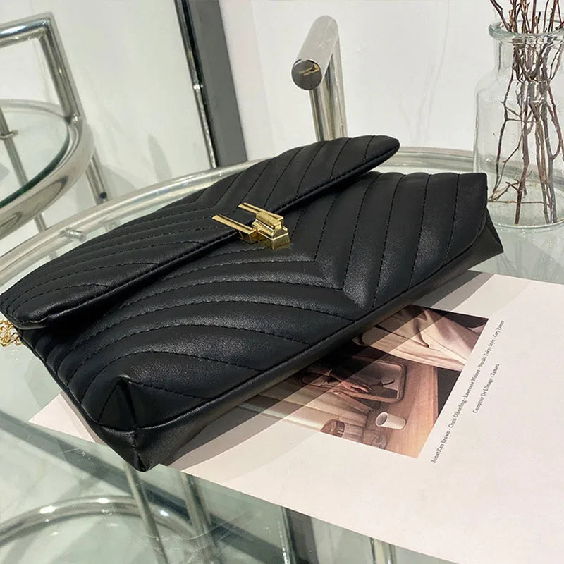This stylish shoulder bag is made of high-quality PU leather with intricate embroidery details. It features a chain strap for a chic look. Perfect for shopping and everyday use.