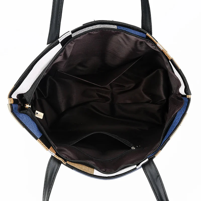 Women's Checkered Shoulder Bag Oxford Casual Travel Tote Handbag