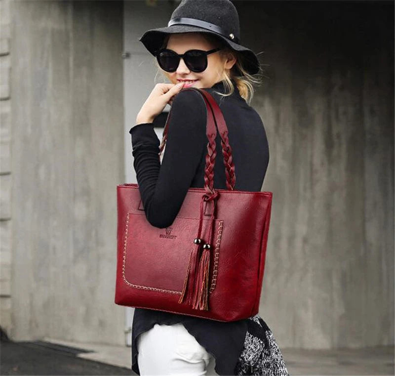 Elevate your style with this retro tassel shopper tote. Made with high-quality leather and featuring a large capacity, this handbag is perfect for everyday use.