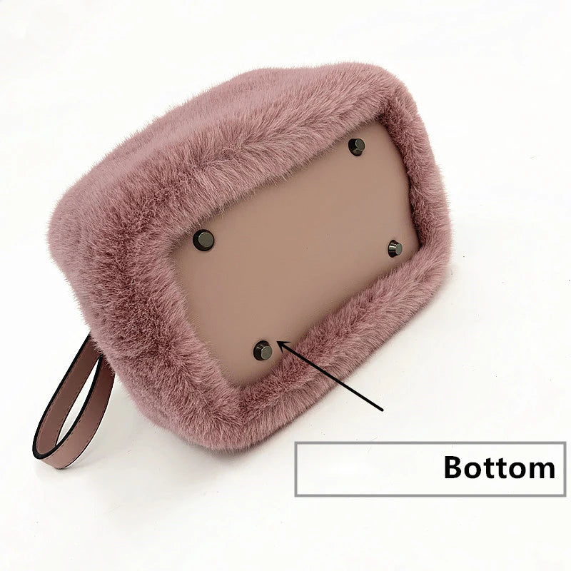 Women's Faux Mink Fur Plush Shoulder Bucket Bag