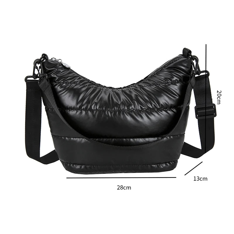 Stay warm and stylish with this winter handbag for women. Made of fluffy space down material, this crossbody bag is perfect for carrying your essentials. The solid quilted design adds a touch of elegance to any outfit.