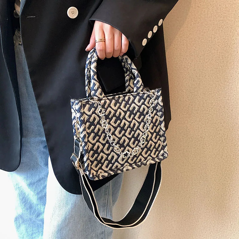 Stylish and spacious tote bag with letter jacquard embroidery for women and girls.